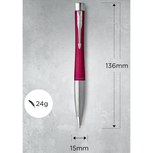 Prémium Urban Twist golyóstoll bíbor, kék tintával, dinamikus kialakítással. Időtlen, modern és szemet gyönyörködtető megjelenés. Ívelt sziluettjével és megnövelt súlyával ez a toll tökéletesen kiegyensúlyozott írást kínál, hogy kiegészítse stílusát. Elegáns lila lakk króm díszítéssel és króm testtel. A forgó mechanizmussal rögzített Quinkflow tinta kivételesen sima és megbízható írást biztosít. A fejlett forgó mechanizmus a Quinkflow tintával kombinálva egyenletes és egyenletes vonalakat biztosít minden papírtípuson. Az ergonomikus forma alkalmazkodik a természetes markolathoz, a toll súlya pedig kiegyensúlyozott írási élményt biztosít.