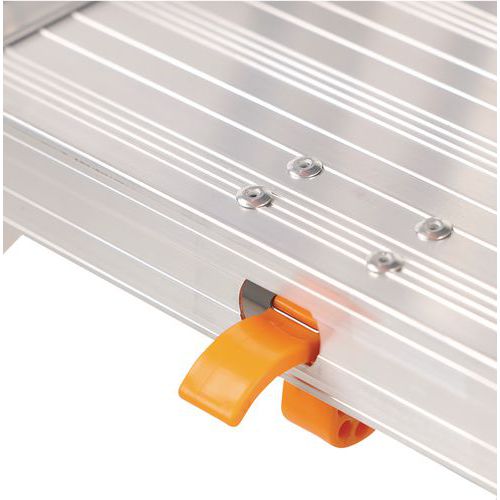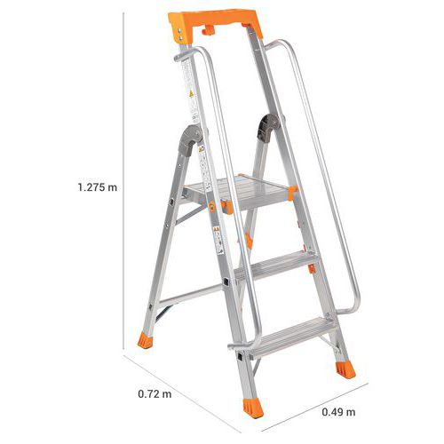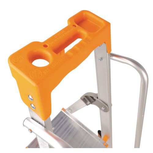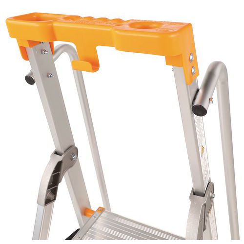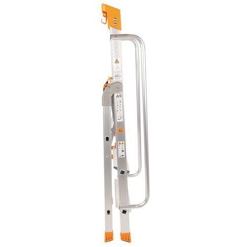 Professzionális alumínium létrák. Többcélú műanyag polcot tartalmaz szerszámhoroggal. Mindkét oldalon kapaszkodó a fokozott biztonság érdekében. Megerősített alumínium keret. Csúszásgátló lábak. Könnyen szállítható és tárolható. Gyártói garancia az ügyfélnek : 10 év Max. terhelés (kg) : 150 kg