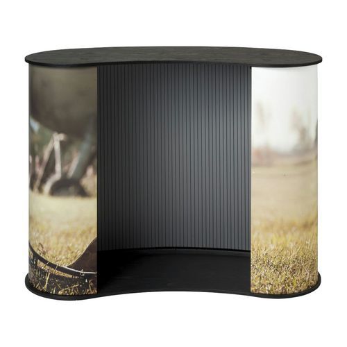 A Professional Original L pult bőséges helyet kínál a bemutatáshoz és a tároláshoz. Az ívelt felső lap elegáns megjelenést kölcsönöz. Az erős konstrukció stabilitást biztosít még gyakori használat esetén is. Ideális kiállításokra, konferenciákra és promóciós standokra.