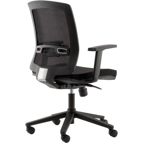 Irodai szék rendkívül kényelmes hálós háttámlával és karfával. Háttámla állítható magasságú deréktámasszal. Az ülés és a háttámla szinkron mozgása, 4 pozícióban rögzíthető. Háttámla magasság beállítása Beállítható ülőrész magasság Állítható súly