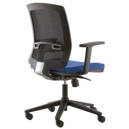 Irodai szék rendkívül kényelmes hálós háttámlával és karfával. Háttámla állítható magasságú deréktámasszal. Az ülés és a háttámla szinkron mozgása, 4 pozícióban rögzíthető. Háttámla magasság beállítása Beállítható ülőrész magasság Állítható súly