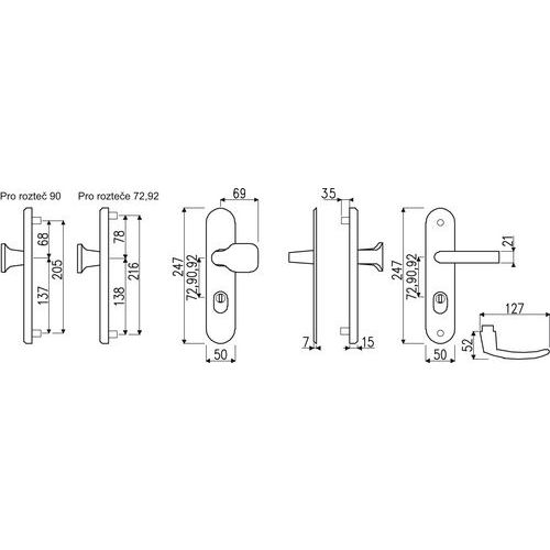 R111 alumínium biztonsági szerelvények, fogantyú/fogantyú betétfedéllel, ZA.72, TB3