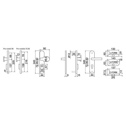 R701 alumínium biztonsági szerelvények, fogantyú/fogantyú betétes rátéttel, ZB.90, TB3, fekete R701 alumínium biztonsági szerelvények, fogantyú/fogantyú betétes rátéttel, ZB.90, TB3, fekete