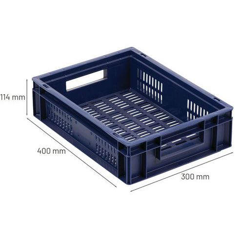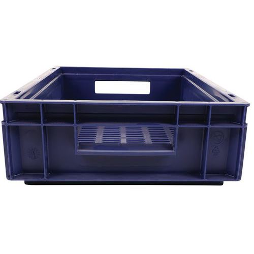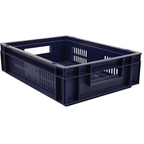 Rakásolható polipropilén szállítórekeszek perforált fenékkel és oldalfalakkal, kompatibilis az EUR-raklappal. Nyitott markolat a könnyű kezelésért.Nagyfokú stabilitás rakásolhatóságnál. Ellenáll az olajoknak, zsíroknak és számos vegyszertípusnak. Alkalmas különböző környezetbe és éghajlati viszonyok közé (például élelmiszeripar).