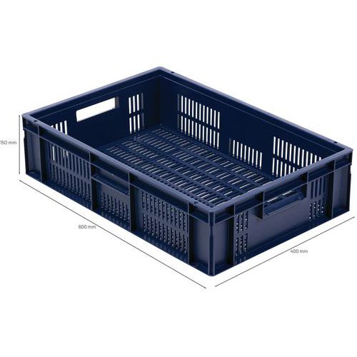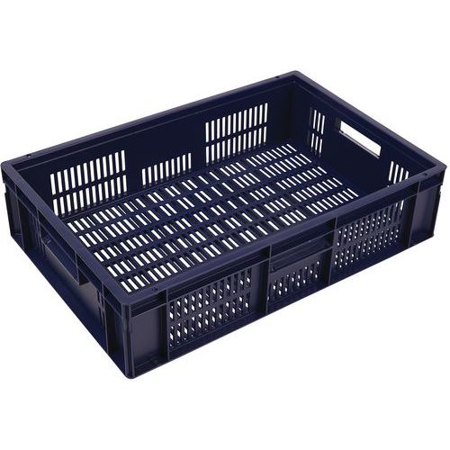 Rakásolható polipropilén szállítórekeszek perforált fenékkel és oldalfalakkal, kompatibilis az EUR-raklappal. Nyitott markolat a könnyű kezelésért.Nagyfokú stabilitás rakásolhatóságnál. Ellenáll az olajoknak, zsíroknak és számos vegyszertípusnak. Alkalmas különböző környezetbe és éghajlati viszonyok közé (például élelmiszeripar).