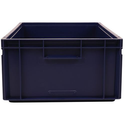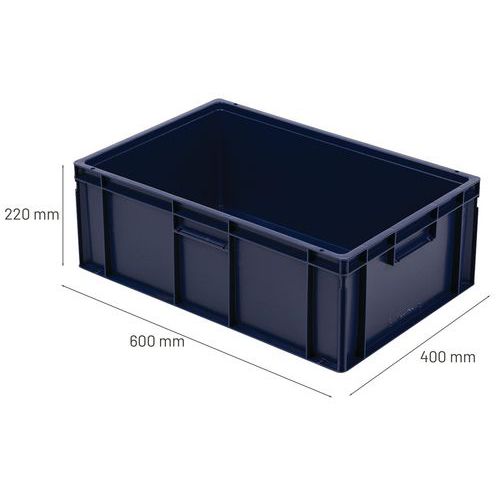 Rakásolható polipropilén szállítórekeszek tömör fenékkel és oldalfalakkal, kompatibilis az EUR-raklappal. Zárt fogantyú a könnyű kezelésért. Nagyfokú stabilitás rakásolhatóságnál. Ellenáll az olajoknak, zsíroknak és számos vegyszertípusnak. Alkalmas különböző környezetbe és éghajlati viszonyok közé (például élelmiszeripar).