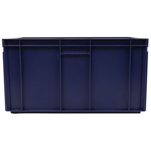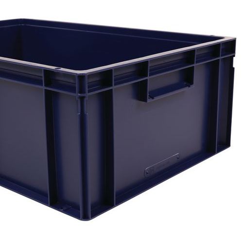 Rakásolható polipropilén szállítórekeszek tömör fenékkel és oldalfalakkal, kompatibilis az EUR-raklappal. Zárt fogantyú a könnyű kezelésért. Nagyfokú stabilitás rakásolhatóságnál. Ellenáll az olajoknak, zsíroknak és számos vegyszertípusnak. Alkalmas különböző környezetbe és éghajlati viszonyok közé (például élelmiszeripar).