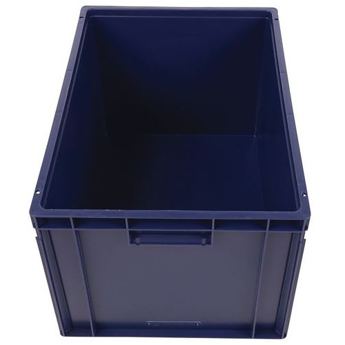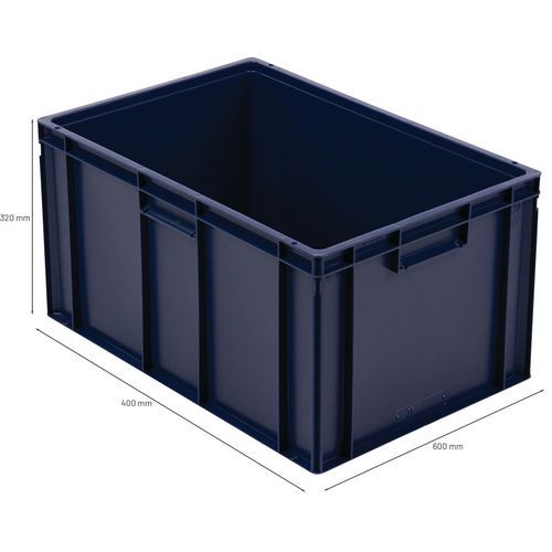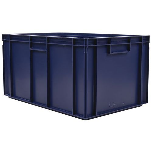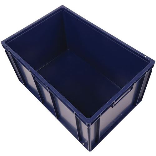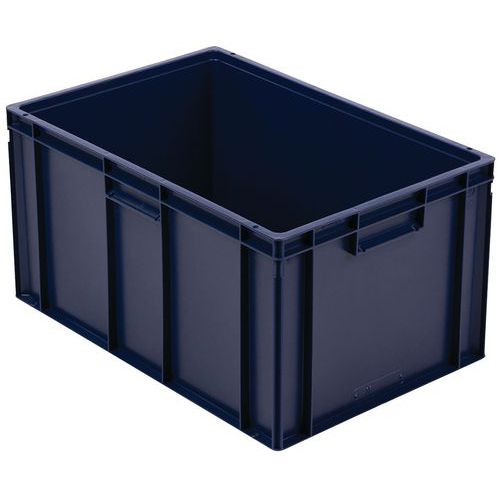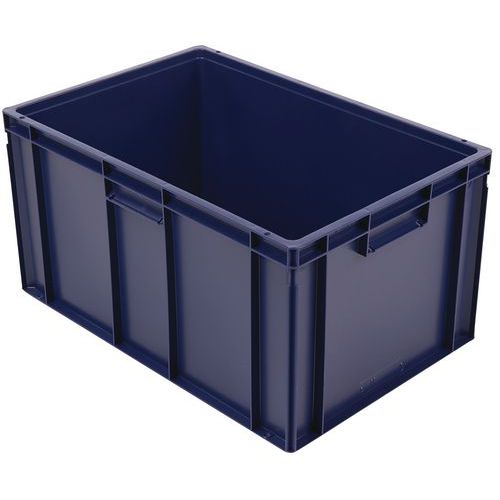 Rakásolható polipropilén szállítórekeszek tömör fenékkel és oldalfalakkal, kompatibilis az EUR-raklappal. Zárt fogantyú a könnyű kezelésért. Nagyfokú stabilitás rakásolhatóságnál. Ellenáll az olajoknak, zsíroknak és számos vegyszertípusnak. Alkalmas különböző környezetbe és éghajlati viszonyok közé (például élelmiszeripar).