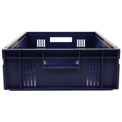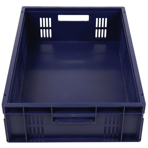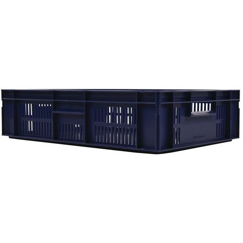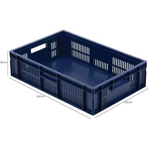 Rakásolható polipropilén szállítórekeszek tömör fenékkel és perforált oldalfalakkal, kompatibilis az EUR-raklappal. Nyitott markolat a könnyű kezelésért. Nagyfokú stabilitás rakásolhatóságnál. Ellenáll az olajoknak, zsíroknak és számos vegyszertípusnak. Alkalmas különböző környezetbe és éghajlati viszonyok közé (például élelmiszeripar).
