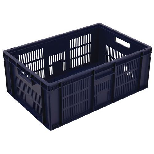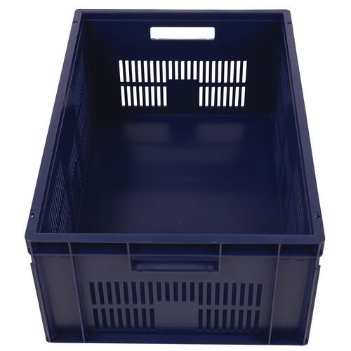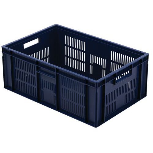 Rakásolható polipropilén szállítórekeszek tömör fenékkel és perforált oldalfalakkal, kompatibilis az EUR-raklappal. Nyitott markolat a könnyű kezelésért. Nagyfokú stabilitás rakásolhatóságnál. Ellenáll az olajoknak, zsíroknak és számos vegyszertípusnak. Alkalmas különböző környezetbe és éghajlati viszonyok közé (például élelmiszeripar).