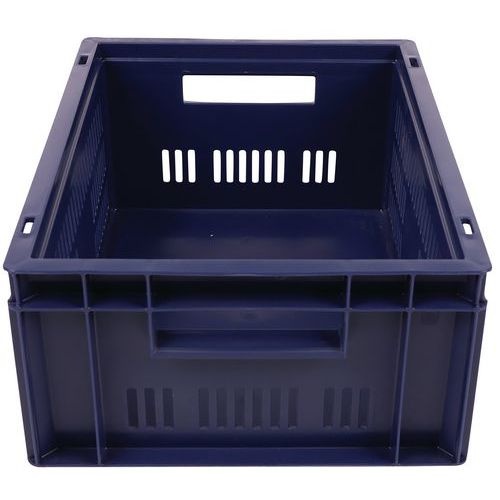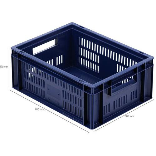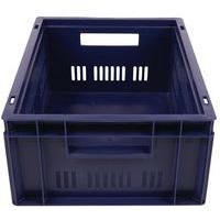 Rakásolható polipropilén szállítórekeszek tömör fenékkel és perforált oldalfalakkal, kompatibilis az EUR-raklappal. Nyitott markolat a könnyű kezelésért. Nagyfokú stabilitás rakásolhatóságnál. Ellenáll az olajoknak, zsíroknak és számos vegyszertípusnak. Alkalmas különböző környezetbe és éghajlati viszonyok közé (például élelmiszeripar).