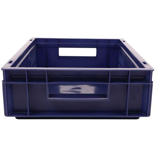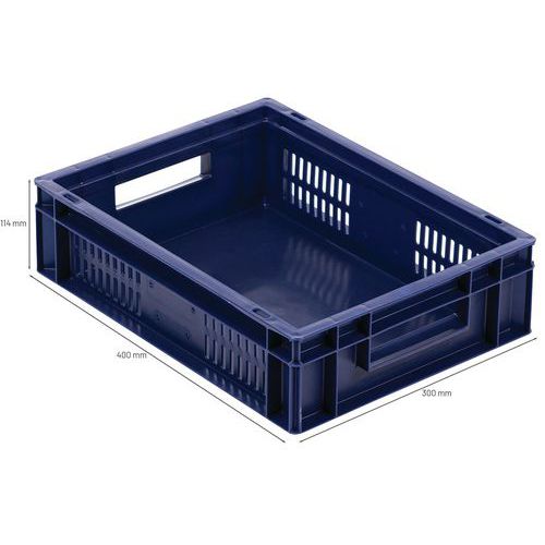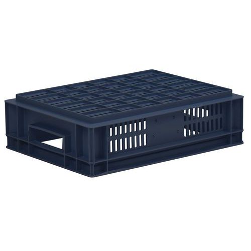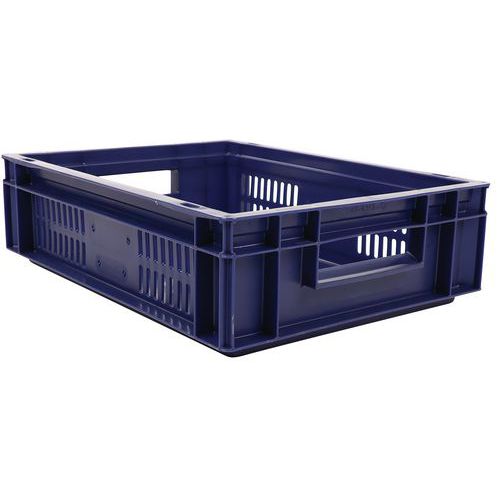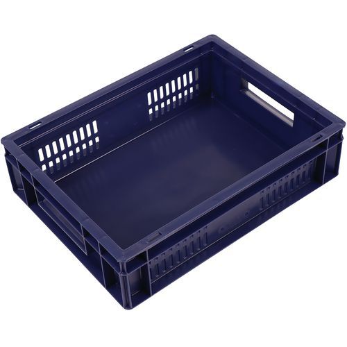 Rakásolható polipropilén szállítórekeszek tömör fenékkel és perforált oldalfalakkal, kompatibilis az EUR-raklappal. Nyitott markolat a könnyű kezelésért. Nagyfokú stabilitás rakásolhatóságnál. Ellenáll az olajoknak, zsíroknak és számos vegyszertípusnak. Alkalmas különböző környezetbe és éghajlati viszonyok közé (például élelmiszeripar).