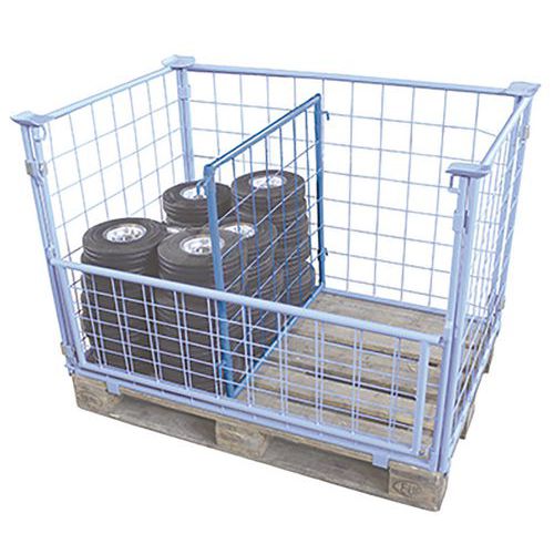 Hálós válaszfal 62-es és 64-es típusú raklapbővítőkhöz. Szembőség 100 x 100 mm. Vázfelület-kezelés RAL skála szerinti porfestékkel. Ütés- és karcálló.