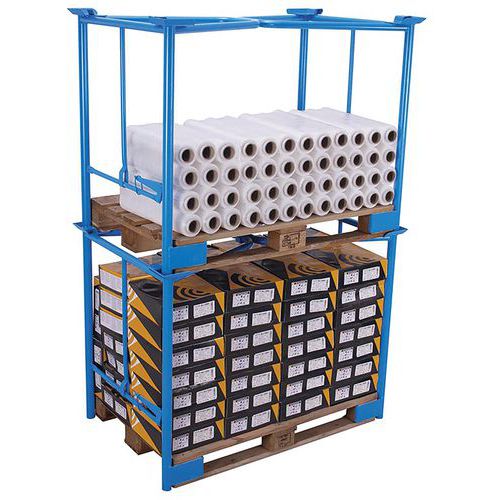 Acél hosszabbítók euróraklapokhoz áruk és anyagok tárolására. Megrakott raklapon történő utólagos összeszerelésre tervezték. Az alkatrészek rögzítése kézi rögzítéssel történik. A kialakítás garantálja a nagy teherbírást és a három darab könnyű egymásra rakását (csak álló helyzetben). A nem használt tartozékok összecsukhatók és tárolhatók a helytakarékosság érdekében. Keret felületkezelés porfestékkel RAL skála szerint. Ütés- és karcálló.