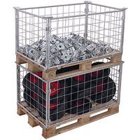 A zárt hálós kialakítású összecsukható raklapbővítők alkalmasak áruk euro raklapokon történő szállítására és tárolására. Maximálisan kihasználják a raklap tárolóhelyét. Szembőség: 100 x 100 mm. A kialakítás nagy teherbírást és négy darab könnyű egymásra rakását garantálja.