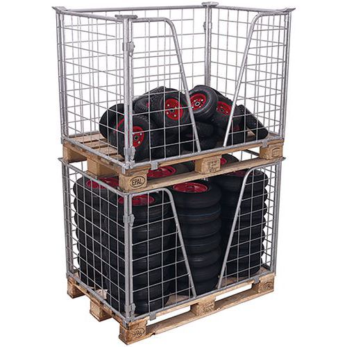 Az összecsukható horganyzott raklaphosszabbítók alkalmasak áruk euro raklapokon történő szállítására és tárolására. Maximálisan kihasználják a raklap tárolóhelyét. Az elülső fal V alakúra lett alakítva a tárolt anyagokhoz való könnyebb hozzáférés érdekében. A kialakítás nagy teherbírást és három darab könnyű egymásra rakását garantálja.