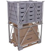 Hegesztett horganyzott felépítmények euro raklapokhoz áruk és anyagok tárolására. Maximálisan kihasználják a raklap tárolóhelyét. A kialakítás nagy teherbírást és három darab könnyű egymásra rakását garantálja (csak rögzített helyzetben). Összecsukható a maximális helytakarékosság érdekében.