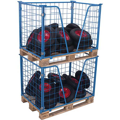 Az összecsukható raklaphosszabbítók áruk euroraklapokon történő szállítására és tárolására alkalmasak. Maximálisan kihasználják a raklap tárolóterületét. Az elülső fal V betű alakú, hogy könnyebben hozzáférjen a tárolt anyagokhoz. A kialakítás garantálja a nagy teherbírást és a három darab könnyű egymásra rakását.