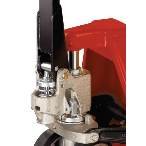 | Termék neve | Raklapkocsi hosszú villákkal, 2000 kg-ig, gumi irányító görgők |