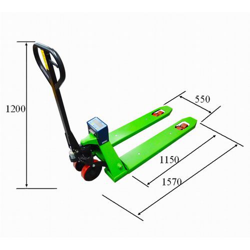 | Termék neve | Raklapszállító kocsi mérleggel, 2000 kg-ig, gumírozott irányító görgők |