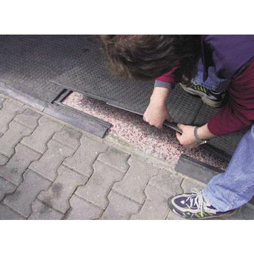 - A lemez alá helyezhető rámpás él magassága 2,2 cm, és kerekes kocsik fel- és legördülésére szolgál. Az élek csökkentett gyúlékonyságúak. Gyors össze- és szétszerelés.