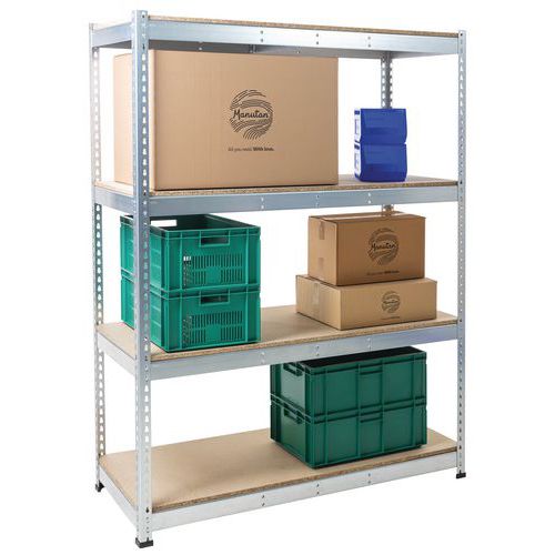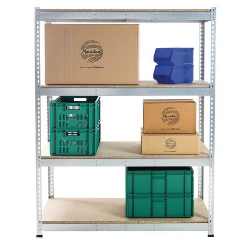 Rapid 1 fém polcállvány, 198 x 152,5 x 45,5 cm, 440 kg/polc, 4 farostlemez polc, horgany Rapid 1 fém polcállvány, 198 x 152,5 x 45,5 cm, 440 kg/polc, 4 farostlemez polc, horgany