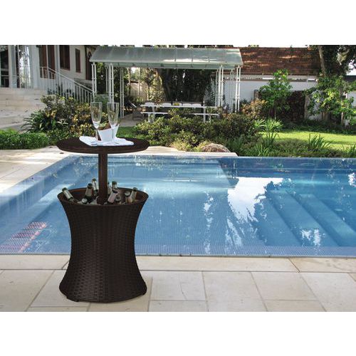 A kerti tálalóasztal beépített italtartállyal nagyszerű kiegészítője minden kerti partinak és ünnepségnek. Használható klasszikus oldalsó asztalként, vagy az asztal akár 83 cm magasra is meghosszabbítható, és egy tárolóval együtt használható. Egyszerűen töltsön jeget a tartályba, és hűtse le az italokat. Rattan utánzatú műanyagból készült. Az asztal maximális terhelhetősége összecsukott állapotban 50 kg. Időjárás- és UV-álló.