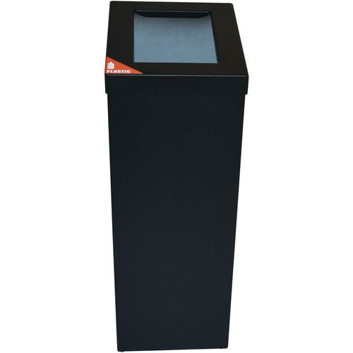 Moduláris kuka felső nyílással és gyűrűvel a szemeteszsák rögzítéséhez. Holland gyártás kiváló minőségű alumíniumból, finomszerkezetű porszórt bevonattal. A levehető nyitott tetejű szemetes megkönnyíti a szemeteszsák cseréjét. Kapcsolóelemekkel szállítva, így több modul egymás mellé kapcsolható, és így hulladékválogató állomás hozható létre. Mellékelve a válogatási folyamatokat holland nyelven jelző címkékkel. Más nyelvű címkék kérésre rendelkezésre állnak. Előlegesen rendelhető: Könnyen felszerelhető zárószárny csillapító rendszerrel. Szintén opcionálisan rendelhető: pohártartó.