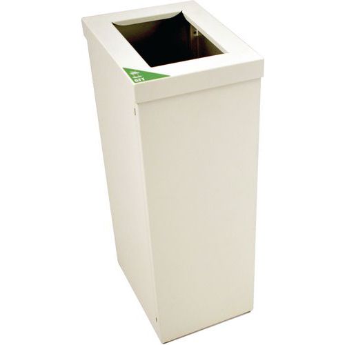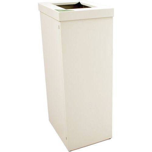 Moduláris kuka felső nyílással és gyűrűvel a szemeteszsák rögzítéséhez. Holland gyártás kiváló minőségű alumíniumból, finomszerkezetű porszórt bevonattal. A levehető nyitott tetejű szemetes megkönnyíti a szemeteszsák cseréjét. Kapcsolóelemekkel szállítva, így több modul egymás mellé kapcsolható, és így hulladékválogató állomás hozható létre. Mellékelve a válogatási folyamatokat holland nyelven jelző címkékkel. Más nyelvű címkék kérésre rendelkezésre állnak. Előlegesen rendelhető: Könnyen felszerelhető zárószárny csillapító rendszerrel. Szintén opcionálisan rendelhető: pohártartó.