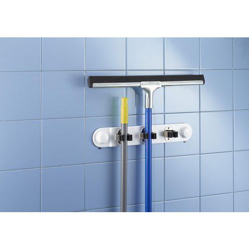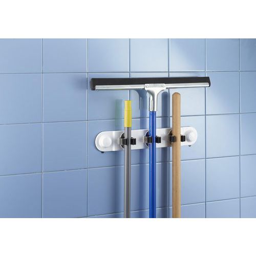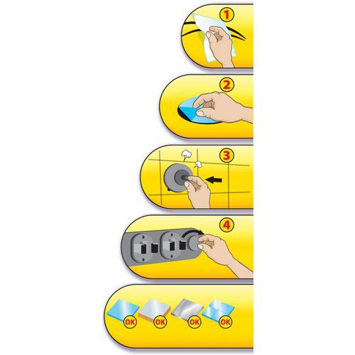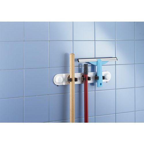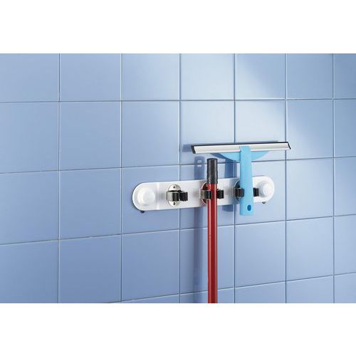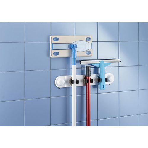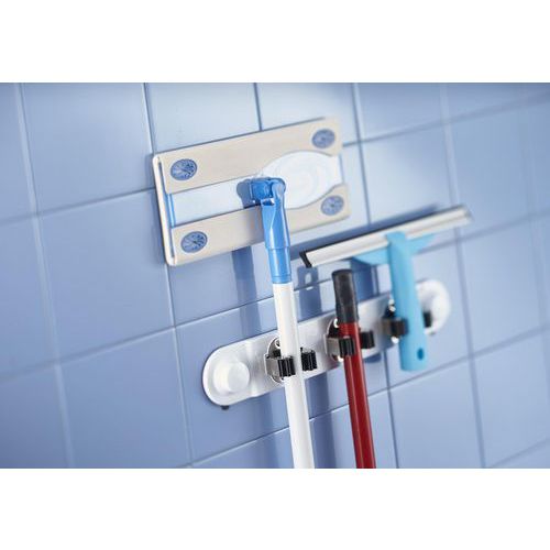 Két öntapadós és áthelyezhető tapadókoronggal rögzíthető, amelyek lehetővé teszik a szilárd rögzítést minden típusú sima burkolathoz, beleértve a festett lapokat vagy fát.