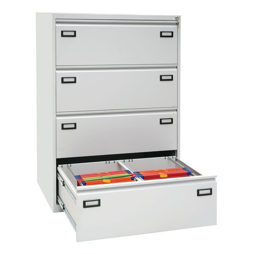 - Fém iratrendezők négy fiókkal teleszkópos golyós sínekkel. Alkalmas A4-es formátumú függeszthető mappák tárolására. Fiókblokkolás, hengerzár.