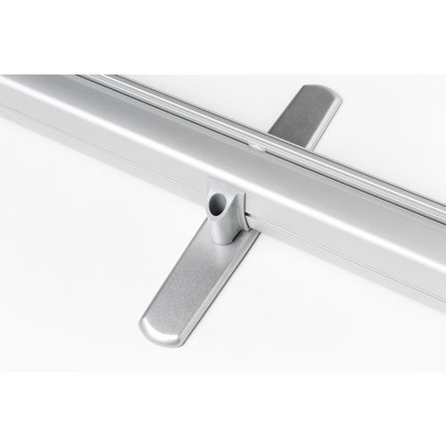 A Roll-Banner Triangle egyedi formájával és kiváló stabilitásával lenyűgöző. A kicsavarható, csúszásgátló bevonatú láb biztonságos használatot biztosít. Az állítható magasság lehetővé teszi, hogy bármilyen környezethez alkalmazkodjon. Nagyszerű megoldás kiállításokra, konferenciákra és promóciós rendezvényekre.