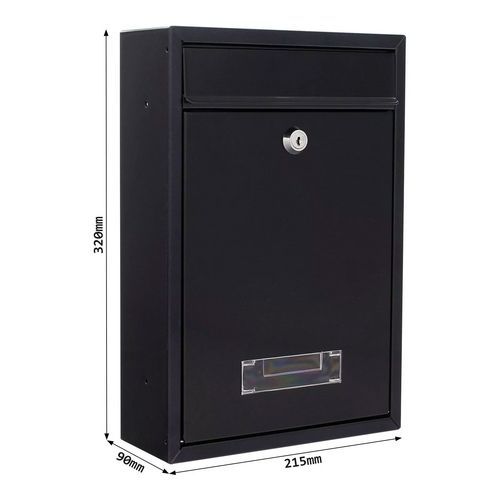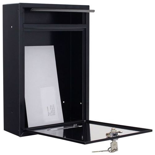 Kültéri postaláda elülső bedobónyílással. Névtáblatartóval. Zárható elülső ajtóval. Időjárásálló, így beltérben és kültéren egyaránt elhelyezhető. Hátoldali furatokkal a falra történő rögzítéshez.