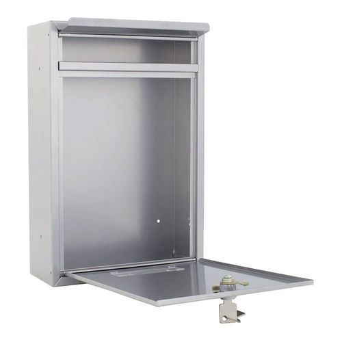 Kültéri postaláda elülső bedobónyílással. Névtáblatartóval. Zárható elülső ajtóval. Időjárásálló, így beltérben és kültéren egyaránt elhelyezhető. Hátoldali furatokkal a falra történő rögzítéshez.