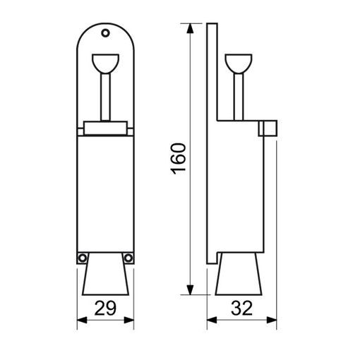 A gumidarabbal ellátott lábfék lehetővé teszi az ajtó rögzítését bármilyen helyzetben. Az ajtólapra történő rögzítés. Felület: matt rozsdamentes acél vagy matt fekete.