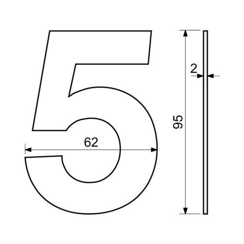 Rozsdamentes acél szám 2D kivitelben, magasság 95 mm, karakter 5 Rozsdamentes acél szám 2D kivitelben, magasság 95 mm, karakter 5