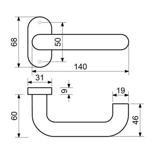 Rozsdamentes acél szerelvények ovális rozettákon a fogantyú visszatérő rugójával