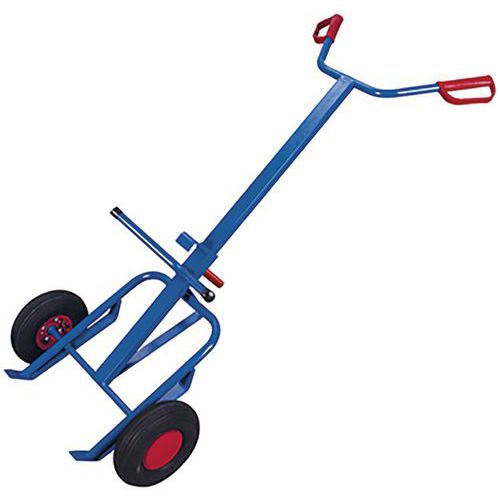 Hegesztett acél szerkezetű kocsi 200l-es hordók szállításához. 2 műanyag fogantyú védelemmel. Központi hordótámasz a nagyobb stabilitás érdekében. Gumiabroncsok acélfelnire vagy tömörgumi kerekek speciális műanyag felnire, precíziós golyóscsapágyakkal és műanyag kerékburkolattal. Keret felületkezelés porfestékkel RAL skála szerint.