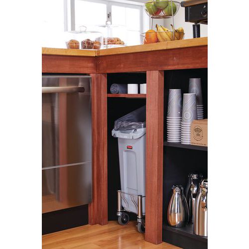 A műanyag szemétkosarakat különösen beépített (built-in) felhasználásra, például szűkös helyeken munkalap alatt történő használatra tervezték. A széles és hosszúkás nyílás megkönnyíti a hozzáférést a kosárhoz. A szélén és az alsó oldalon lévő fogantyúk kényelmesebbé teszik a kezelést a kosár kiöntésénél. Az integrált besajtolások hatékonnyá teszik a megfogást és a zsákok cseréjét. A megerősített szerkezet ellenáll az ütéseknek.