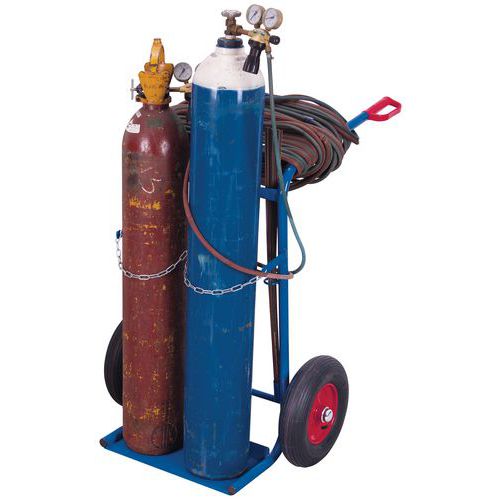 Talicska 2 db 210-250 mm átmérőjű, 40-50 l űrtartalmú acélhenger szállítására. Biztonsági lánc palackok rögzítéséhez. Stabil hegesztett szerkezet, amely ellenáll az ütéseknek és a karcolásoknak. Műanyag fogantyú védelemmel. Gumiabroncsok acélfelnire vagy tömörgumi kerekek speciális műanyag felnire, precíziós golyóscsapágyakkal és műanyag kerékburkolattal. Keret felületkezelés porfestékkel RAL skála szerint.