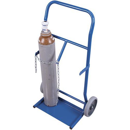 2 db 10 l térfogatú és 140 mm átmérőjű acélhenger szállítására alkalmas kocsi. A palackokat 3 oldalról pereme és biztonsági lánc védi. Lapát méretei 410 x 210 mm. Hegesztett szerkezet acéllemez vastagságból. 4 mm, ütés- és karcálló. Keret felületkezelés porfestékkel RAL skála szerint. Nem elkenődésmentes, hőre lágyuló gumi kerekek műanyag peremen, golyóscsapágyakkal. Teherbírás (kg) : 100 kg