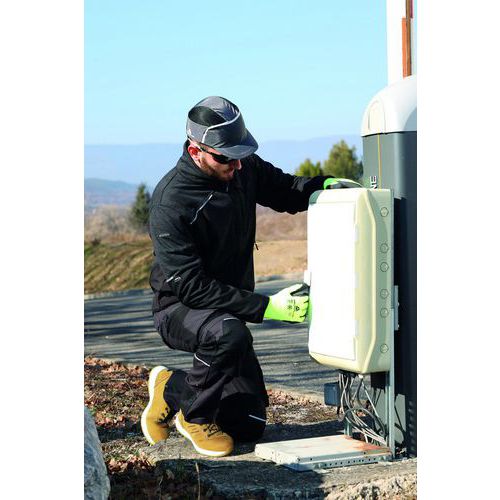 A láb stabilizálása járás közben. Párnázott gallér a kényelem és a bokatartás érdekében. Hátsó fül, amely megkönnyíti a cipő levételét. Kivehető talpbetét a könnyű mosáshoz. Perforációgátló betét: Nem fém. Felső anyag és kivitel: nubuk. Biztonsági lábujj: kompozit. Amagnétique