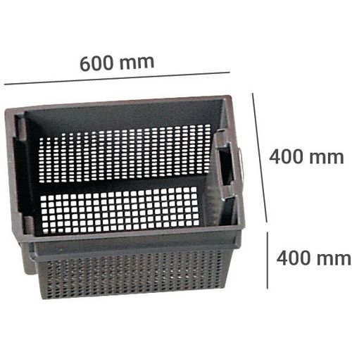 60%-ban visszahúzódik egymásra rakáskor, így tárhelyet takaríthat meg. Könnyű kezelés a nagy fogantyúknak köszönhetően. A sima fenéknek köszönhetően minden típusú szállítószalaggal kompatibilis. A kettős színszerkezet megkönnyíti a halmozási/tárolási pozíciók azonosítását. Gyártói garancia az ügyfélnek : 3 év Max. terhelés (kg) : 30 kg