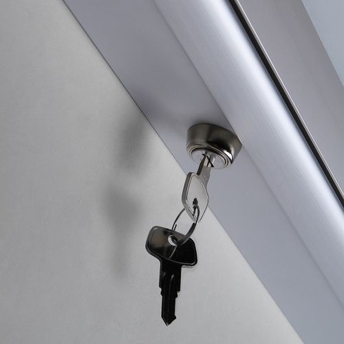 Mágneses vitrinek ezüst eloxált alumínium kerettel, alkalmas beltérbe. A gumitömítéses elülső ajtó biztosítja a vízhatlanságot. 4 mm vastag keményített ESG üveg ESG üveg: Speciális, biztonsági keményített üveg - ajtóüvegként vagy autók szélvédőjeként használják. Az EU-ban készült
