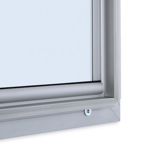 Kültérben használható plakátkeretek. 4 mm vastag keményített ESG üveg. IP56 védettségi fokozat. Védettségi fokozat IP 56: A termék védve van az intenzíven fröccsenő vízzel és a porral szemben. ESG üveg: Speciális, biztonsági keményített üveg - ajtóüvegként vagy autók szélvédőjeként használják.