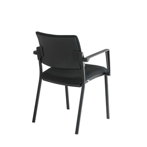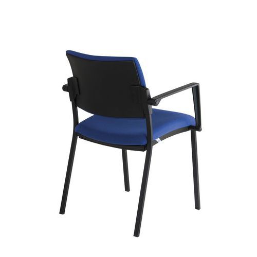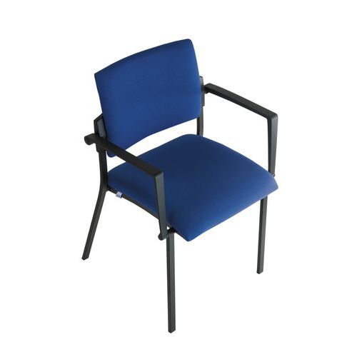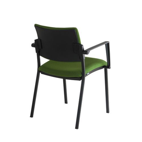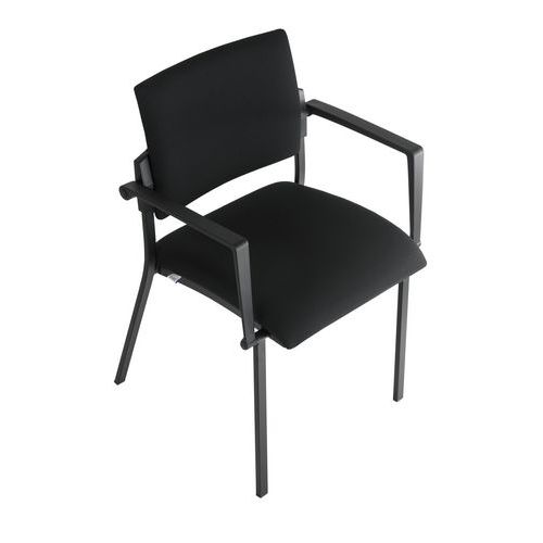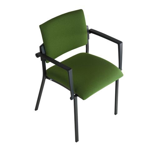 Kárpitozott szék konferencia- és tárgyalótermekbe, oktatóközpontokba, várótermekbe stb. Az ülőlap és a háttámla Cura anyagú huzata rendkívül tartós, akár 100 000 ciklust kibír. A stabilitást a fekete, matt kivitelű fémszerkezet biztosítja Műanyag karfákkal és a talpain műanyag dugókkal szállítva. Ötösével rakásolva könnyedén hordozható és tárolható.