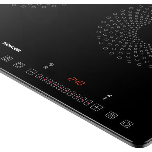 A Sencor ultravékony indukciós főzőlapja 2 db 26 cm átmérőjű főzőlappal rendelkezik, amelyek 12-26 cm átmérőjű edényekkel kompatibilisek.
