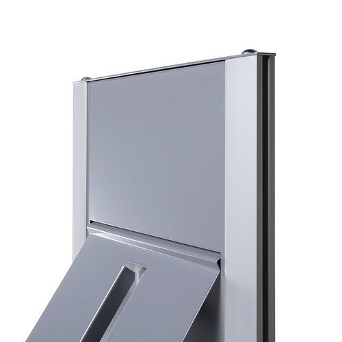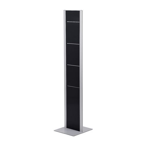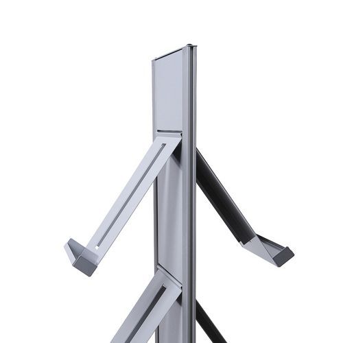 Kétoldalas moduláris zsebtartó állványok A4 formátumra. Az állvány nyolc A4 formátumú pléh vagy áttetsző műanyag rekesszel egészíthető ki. A prospektus tartó zsebek egyenként helyezhetők el az állvány mindkét oldalán. A kétszínű alumínium szerkezet a tartó nagy stabilitását biztosítja.