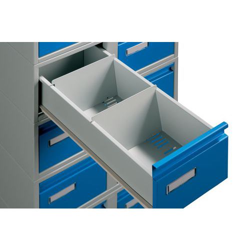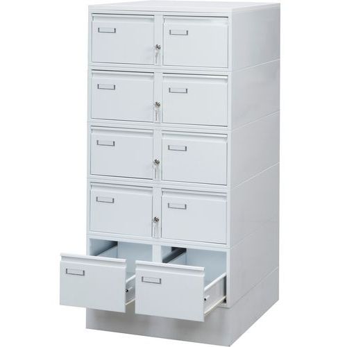 Fém kártyarendezők lábbal, A5 formátumú kártyák elhelyezésére. Masszív szerkezet, minden fiókban két térelválasztó. Mindig a két szomszédos fiók záródik.