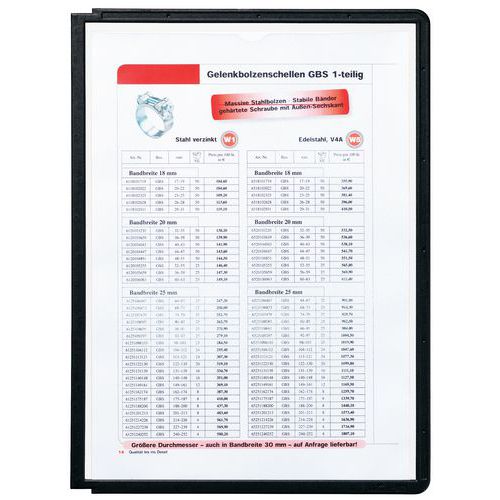 Tükröződésgátló bevonattal és tömör profilozott kerettel ellátott zseb a kerület mentén. Dokumentumok közvetlen másolása vagy szkennelése a zseben keresztül. A dokumentumok számos manipuláció során védettek.